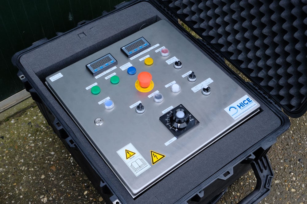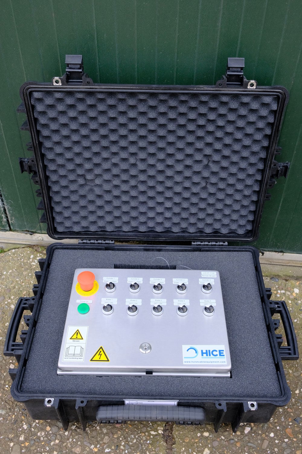The lay-out of a LCE can be arranged in several ways, HICE has chosen for a split between the tensioner-part and the hydraulic power unit (HPU). This allows the HPU to be placed separately at some distance, which has the advantage of reduced noise and reduced space requirement on the work-deck. The tensioner-part is top loading to ease loading/unloading of cables and allows for simplified handling of end-connections and possible joints.